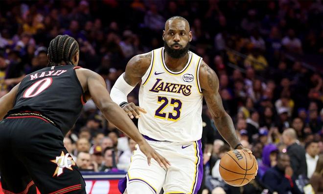 76人依靠格萊姆斯的三分球和恩比德的跳投,將比分追到105平。關(guān)鍵時刻還是詹姆斯站出來,他接到東契奇助攻,又在45度角外線出手三分命中。76人的進(jìn)攻未果,湖人隨后一攻交到詹姆斯手中。他持球突破,后撤步中投得手。比賽時間還剩27.3秒,湖人110比105領(lǐng)先5分,76人叫了暫停。