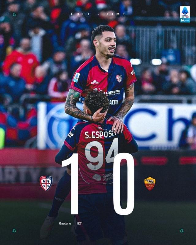 意甲第14輪,羅馬客場0比1不敵卡利亞里,遭遇聯(lián)賽2連敗,卡利亞里則取得近11輪首勝。上半場雙方均無紀(jì)錄,第52分鐘切利克被紅牌罰下,少打一人的紅狼撐到第82分鐘終告失守:卡利亞里左側(cè)角球,加埃塔諾后點(diǎn)抽射破門。羅馬輸球后暫時(shí)仍位居第4,落后國際米蘭3分。