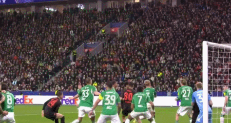 第13分鐘,角球開出,安德里希頭球打在吉馬良斯身上入網(wǎng),勒沃庫森1-0