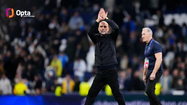 據(jù)Opta統(tǒng)計,瓜迪奧拉執(zhí)教生涯在各項賽事中對陣皇家馬德里的28場比賽里贏下了14場(7平7負)。