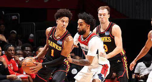 老鷹過去3場連輸活塞、快船與掘金遭遇3連敗,奇才過去兩場連輸76人與凱爾特人遭遇2連敗。本場老鷹缺少特雷-楊、波爾津吉斯、托平等,奇才缺少米德爾頓、庫利巴利、薩爾與基斯珀特等。首節(jié)開局老鷹4-10落后,老鷹之后繼續(xù)被壓制12-18落后,杰倫攻傳結(jié)合引領(lǐng)一波23-5攻勢反超12分。奇才連得5分,首節(jié)結(jié)束老鷹35-28領(lǐng)先奇才。老鷹27中12超過5成準(zhǔn)星,但三分8中1,杰倫6中5得到11+3+3,奇才20中10,其中三分10中4。