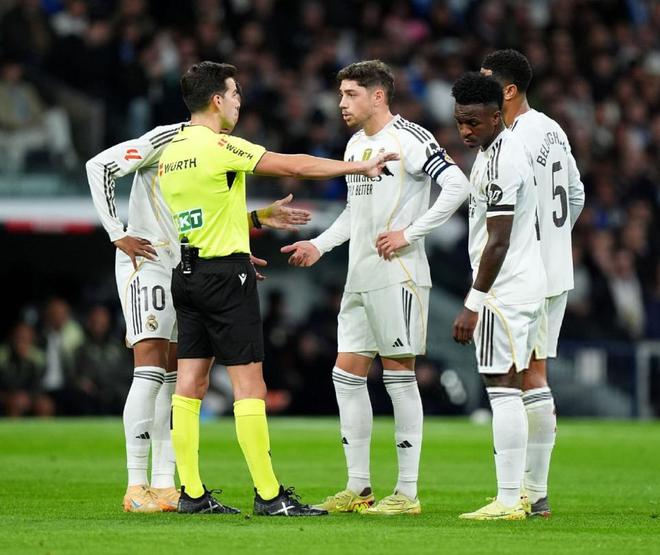 為了能夠延續(xù)對塞爾塔的強勢發(fā)揮,阿隆索此役也是盡遣主力出戰(zhàn),在442的陣型中,讓庫爾圖瓦鎮(zhèn)守龍門,加西亞、卡雷拉斯、米利唐和勞爾阿森西奧構(gòu)筑后防,貝林厄姆、瓊阿梅尼、居萊爾和巴爾韋德坐鎮(zhèn)中場,雙箭頭則是維尼修斯搭檔姆巴佩。