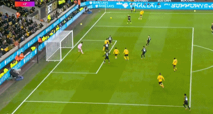 傷停補時階段,克雷基奇右路傳中,沃爾費倒三角回敲,貝勒加德飛身凌空鏟射得手,狼隊扳平比分,1-1!