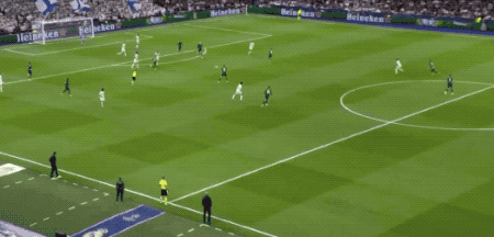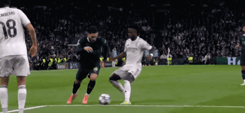 第50分鐘,維尼修斯傳中,羅德里戈假射真?zhèn)?,貝林厄姆的挑射,稍稍高出?/p>